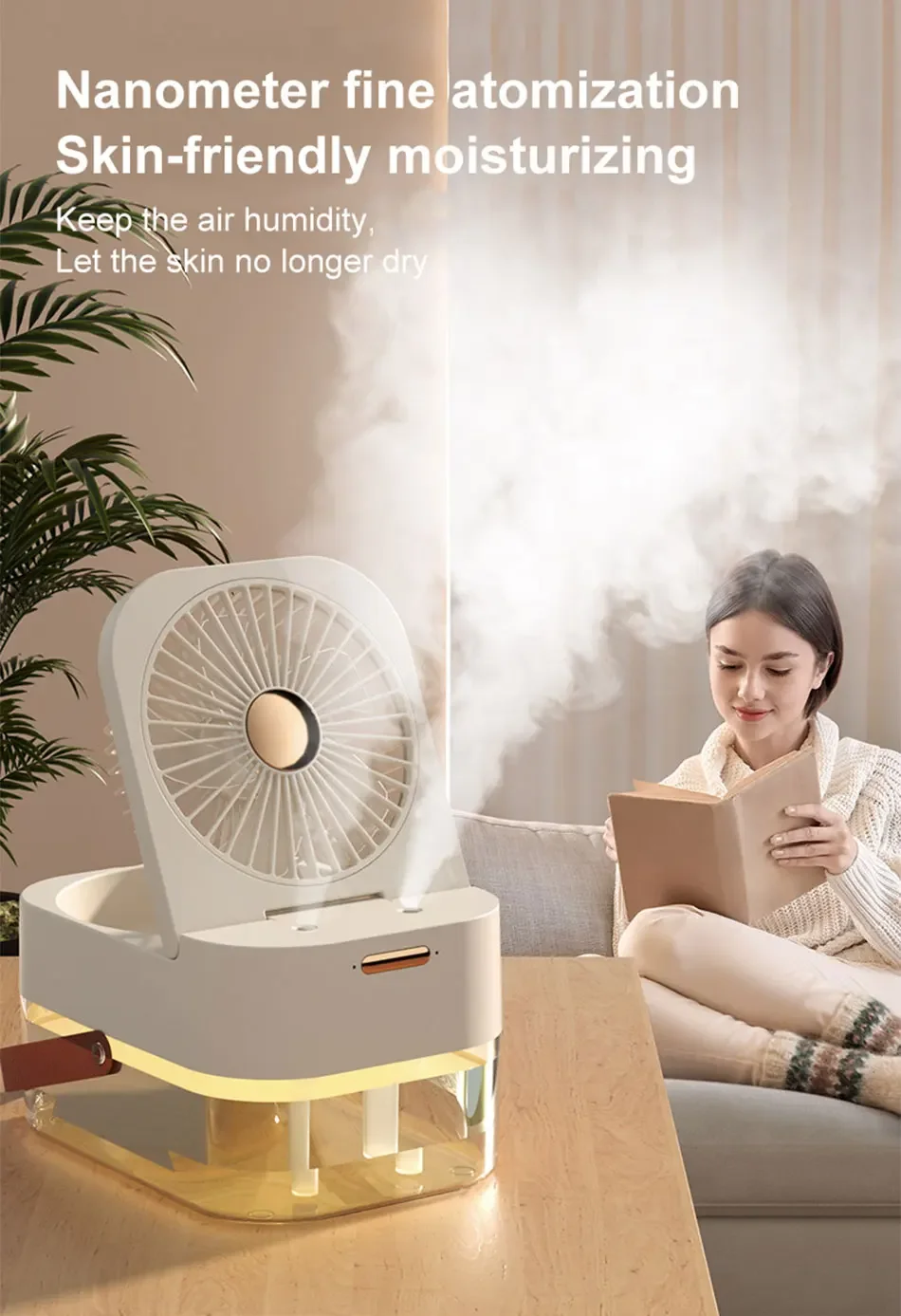 Ventilador portátil 3 em 1 umidificador de ar condicionado, ventilador de refrigeração USB, refrigerador de ar, LED, luz noturna