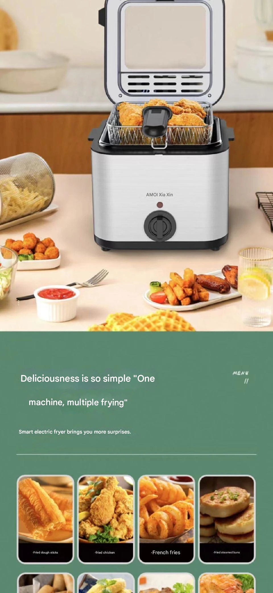 Fritadeira elétrica de aço inoxidável de grande capacidade para frango e batata frita doméstica máquina de fazer carne